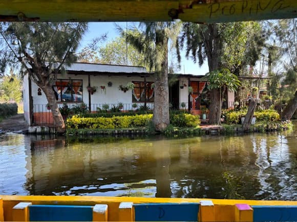 They have a delightful carnival atmosphere where visitors can float on brightly painted punts down the tree-lined main canal past small houses, gardens and a garden centre. Musicians board the punts, playing marimba and mariachi music, flower-sellers in canoes and floating kitchens come alongside. Boats making the return trip pass slowly by and there are periods of peace and tranquility, as there are no outboard motors and little other noise. It is such a happy, positive place and a unique attraction for visitors. On Sundays, crowds of city residents arrive and the party atmosphere reaches a crescendo.
